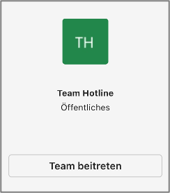 Gib in die Suchzeile den Suchbegriff „Team Hotline“ ein.Auf der rechten Seite erscheint die öffentliche Gruppe „Team Hotline“. Fahre mit der Maus darüber und es wird „Team beitreten“ angezeigt.