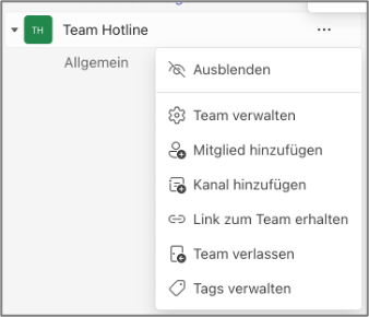 Klicke auf die Optionen des Teams und auf „Team verlassen“
